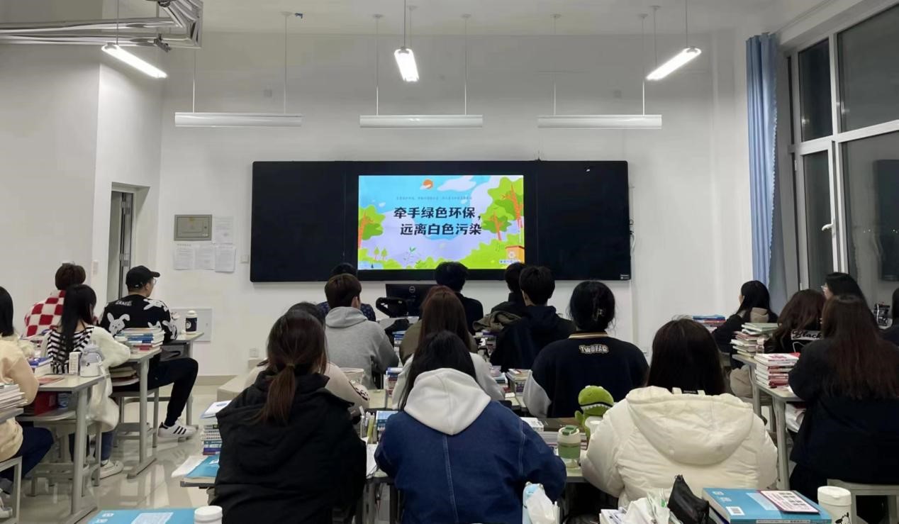 活动在“牵手绿色环保 远离白色污染”主题团课中拉开序幕。团课上,辅导员用生动有趣、贴近生活实际的小视频导入主题,从常见的白色污染的现状、危害、塑料分类及使用等方面讲授,要求全体同学从自我做起、从现在做起,切实践行拒绝白色污染。随后,该院开展知识竞赛,同学们踊跃参与,认真思考,在竞赛中学习白色污染和垃圾分类知识。接着,该院开展承诺签名活动,学生会骨干、班委成员带头在写有“牵手绿色环保 远离白色污染”的条幅上郑重签名,并承诺在日常生活中减少使用一次性用品,拒绝白色垃圾进校园,加强自我管理,相互监督,做文明学子,建文明校园。最后,同学们共同宣读倡议书,积极响应学院环保号召,从现在开始,从身边做起,争做“节约达人”,为建设美丽校园贡献自己的一份力量。后续,该院将成立专门队伍重点对食堂、宿舍等白色污染一次性用品使用区域开展文明劝导活动,积极引导同学们充分利用餐厅资源,自觉堂食,杜绝打包,用实际行动向白色污染说“不”。