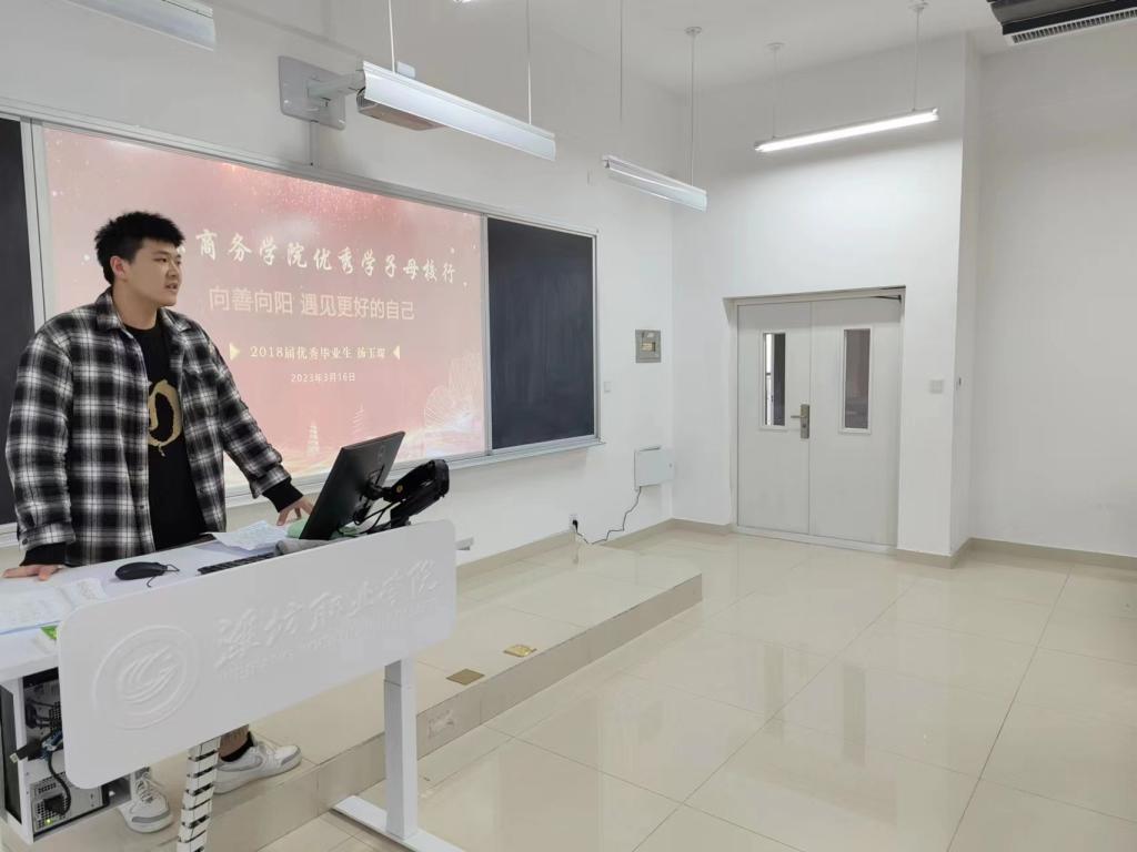 为强化优秀学子榜样引领作用,充分发挥朋辈教育力量,国际商务学院于3月16日下午举办“向善向阳,遇见更好的自己”优秀学子母校行活动。该院学生代表和“潍爱”青年志愿者协会的代表约60人现场参加了活动。