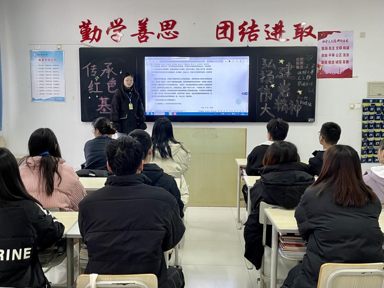 活动伊始,各班级团支书通过PPT向同学们讲解了习近平总书记在庆祝中国共产党成立一百周年上的重要讲话和党的十九届六中全会精神,共同感受历史人物的革命事迹,领悟中国共产党员的伟大奋斗精神。通过观看视频,同学们直观地了解到党的光辉历程,感受到党不忘初心、砥砺奋进的使命担当。观影结束后,同学们纷纷表示,将以坚定的信心、饱满的热情投入到以后的学习中去,不断前进,奉献自己的光和热,为实现中华民族伟大复兴的中国梦不懈奋斗。