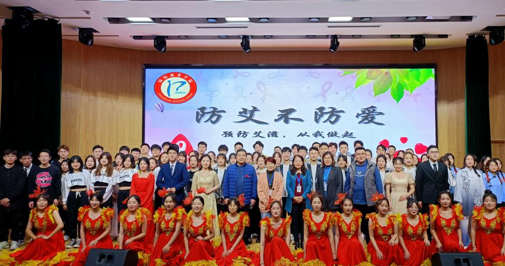 为增强青年学生的防艾意识,倡导其养成健康文明的生活方式,持续推进艾滋病防治及新冠病毒肺炎预防工作,11月25日下午,国际商务学院举办“防艾不防爱”文艺汇演,奎文区疾病预防控制中心主任、预防艾滋病科科长、学院后勤服务处医疗服务中心主任、医生代表、国际商务学院分管学生负责人、奎文校区各二级学院团总支书记及全体辅导员(班主任)参加了此次活动。