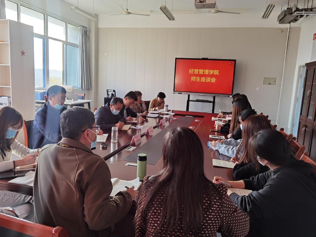 为营造学院良好的学习氛围,全面了解各班的教学情况和学生学习情况,及时发现和解决教学过程中存在的问题,进一步加强班级学风建设,经营管理学院于11月4日在惠泽1号楼A区303会议室召开期中教学检查师生座谈会,经营管理学院党总支负责同志、教务处相关负责同志出席会议。