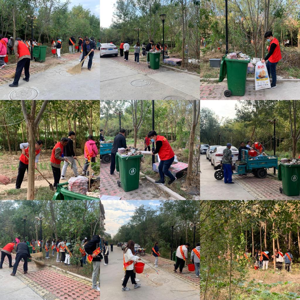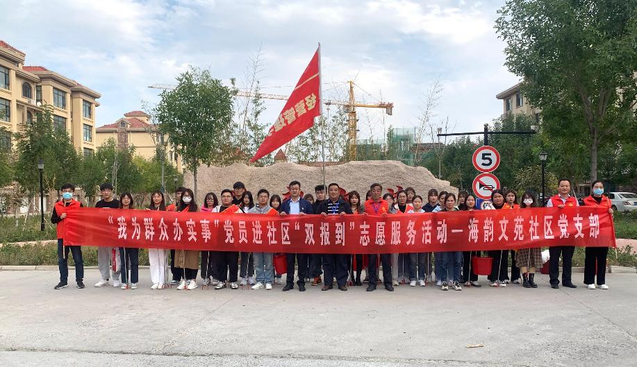 10月18日下午,经营管理学院党总支、财务处党支部组织党员及学生志愿者到“双报到”社区——央子街道海韵文苑社区开展“共创文明社区、环境卫生清理”志愿服务活动。