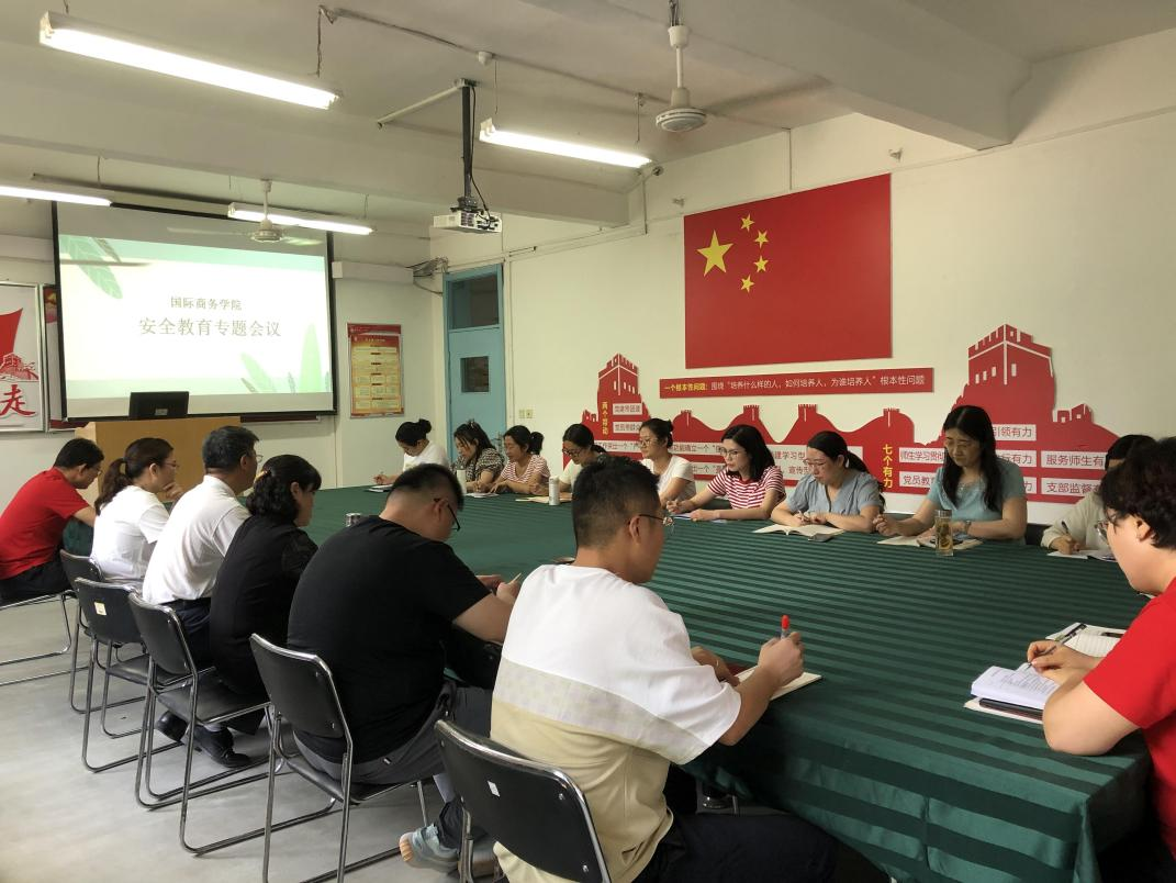 国际商务学院高度重视,召开了“青春爱党·和谐校园”安全教育专题会议。该院党政主要负责同志就做好学院安全工作提出明确要求:一要认真落实学校安全工作部署要求,把维护校园安全稳定作为头等大事;二要强化风险意识,巩固疫情防控成果。紧密结合疫情防控常态化形势,抓好落实;三要做实安全教育,提高应急处置能力。通过微信公众平台等各种形式,加强逃生自救、防溺水、学生安全、心理健康等方面的教育,切实提高师生安全防范意识和应急避险能力。随后,该院分管学生负责人就校园安全工作进行了部署。一是深刻领会上级安全会议精神,增强抓好校园安全工作的自觉性,提高防患意识和能力。二是强化学生安全意识。围绕疫情防控、防溺水安全、食品安全、人身安全等内容进行专项教育,切实提高学生安全防范意识和应急避险能力。三是增强学生文明出行意识,做到遵守交通规则,文明乘坐交通工具。四是提高学生网络安全意识,营造文明上网氛围。五是加强学生心理安全教育,让学生意识到心理安全的必要性和重要性,提高学生的心理自我调解能力。