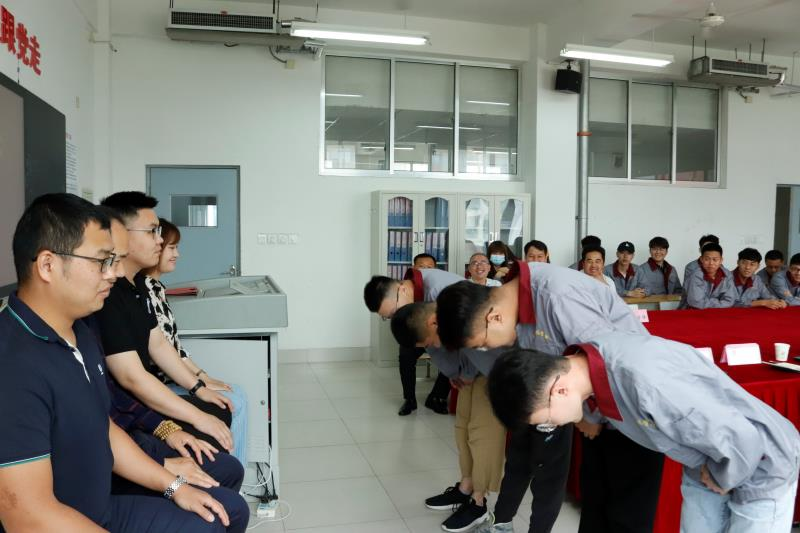拜师仪式上,学院负责人为“玖鼎设计现代学徒制项目班”的4位师傅颁发聘书,徒弟们依次向师傅作揖行礼奉茶。拜师礼成后,师徒代表分别做了表态发言。