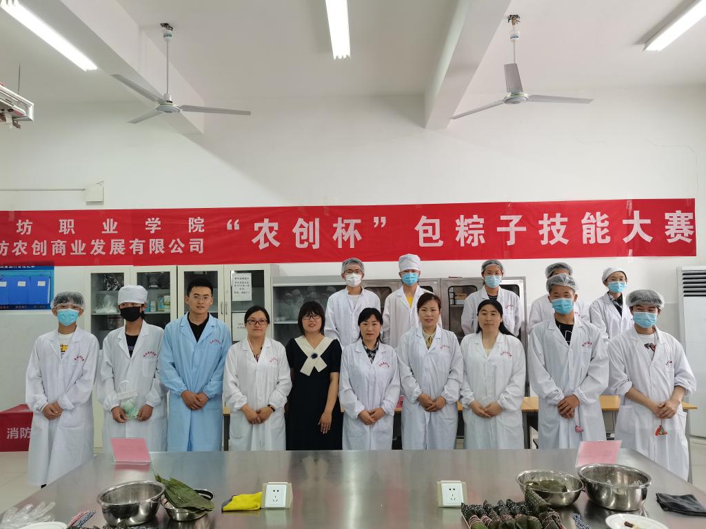 为了弘扬民族精神,传承中华传统文化,6月9日下午,食品药品学院与潍坊农创商业发展有限公司联合举办“农创杯”包粽子技能大赛,食品质量与安全(校企共建专业)班全体师生参加了比赛活动。
