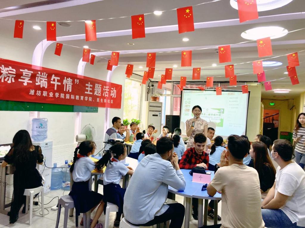 6月9日上午,国际教育学院联合“双报到”单位民生街社区,邀请潍坊市实验小学共同组织开展了“中外一家亲·粽享端午情”迎端午主题活动。国际教育学院来自哈萨克斯坦、塔吉克斯坦、乌兹别克斯坦以及俄罗斯的留学生们与潍坊市实验小学的16名小学生共同参加了本次活动。