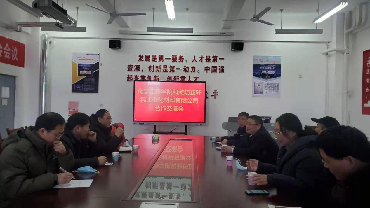 1月7日上午,淄博包钢灵芝稀土高科技股份有限公司总经理常传德一行5人到化学工程学院洽谈校企合作事宜,化学工程学院主要负责同志和产学合作相关教师参加了交流会议。