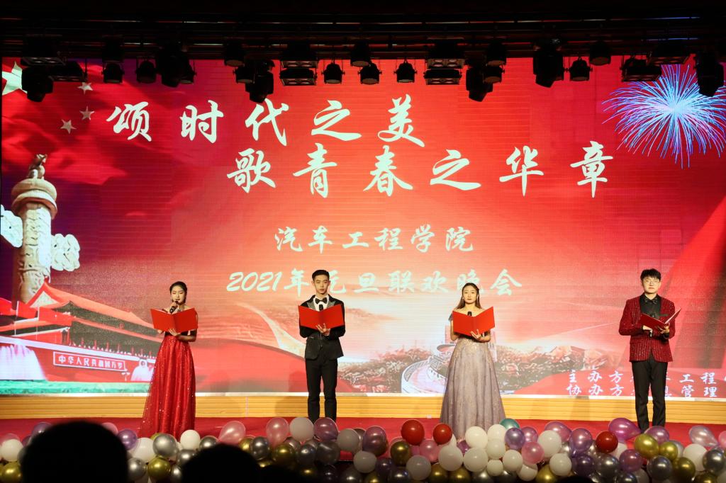 12月30日晚,汽车工程学院“颂时代之美,歌青春之华章”元旦联欢晚会在图书馆报告厅举行。相关职能部门及二级学院负责同志和汽车工程学院师生欢聚一堂,共同迎接2021年的到来。
