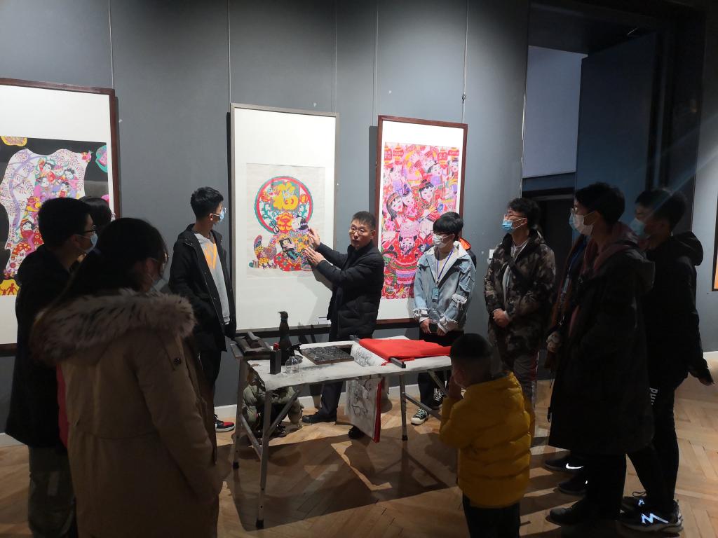 活动中,必赢潍坊民间技艺传承基地年画工作室项目严海涛老师带领2019级与2020级15名环境艺术设计专业学生,到潍坊美术馆参观了“撷古契今——潍坊年画发展与创新成果展”,并到“十笏园”文化街区非遗传承基地进行研学,向学生介绍潍坊年画的历史与现状,深入了解和学习潍坊年画新中国成立后三次改革的创新成果,亲身感受在时代变革和大文化影响下潍坊年画的新面貌。