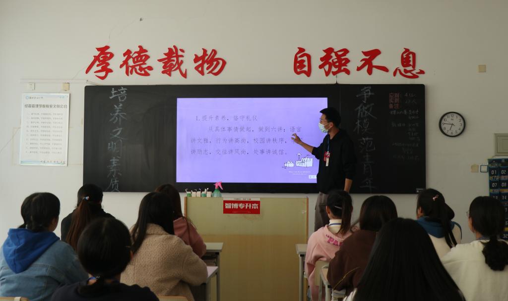 为引导经营管理学院学子养成良好的行为习惯,提升同学们的综合素质,促进良好校风、学风建设,营造一个文明健康、积极向上的学习生活环境。11月12日下午,经营管理学院开展“培养文明素质·争做模范青年”主题团课活动。