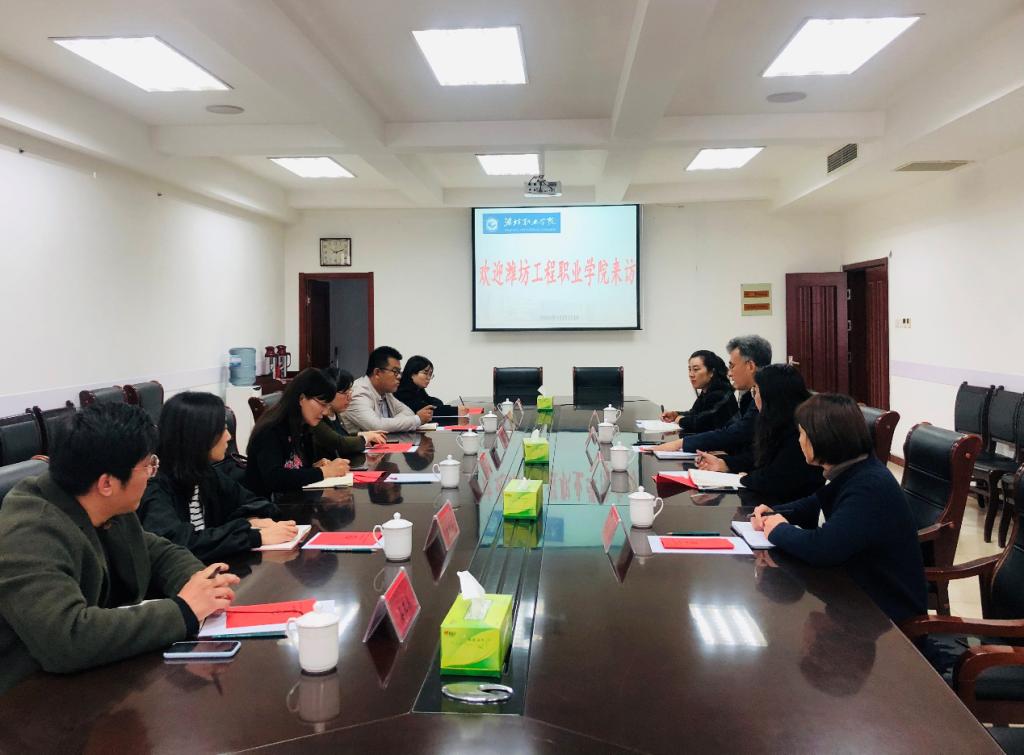 11月12日,潍坊工程职业学院国际交流学院院长王兴芹一行6人来必赢考察交流国际化办学情况,国际交流与合作处(国际教育学院)负责人及相关人员参加了座谈交流。