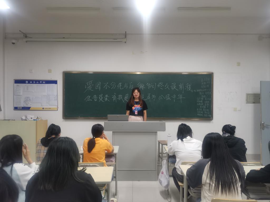 本次活动分为三个部分。一是爱国主义观影读书活动,组织各班同学观看电影《建国大业》,读红色书籍《毛泽东纪事》、《评述邓小平》、《毛泽东的政治哲学》等,同学们更加详细深刻地了解了我党从成立之初筚路蓝缕,以起山林,到带领中国人民建立中华人民共和国一路走来,一路坎坷,却也一路辉煌,一路凯歌。二是召开爱国主义主题班会。同学们就“爱国不分先与后,徘徊终久误前程”,“生吾炎黄,育我华夏。待之有为,必报中华”等老一辈革命先烈的爱国情怀发表了自己的认识与感慨。三是最美瞬间摄影活动:小长假期间,组织学生利用假期开展调研,观城乡变迁、览社会发展,拍摄身边最美瞬间,通过捕捉身边的最美瞬间,听家中长辈讲述家乡历史,加深了同学们对家乡的热爱,对祖国大好河山的礼赞。
