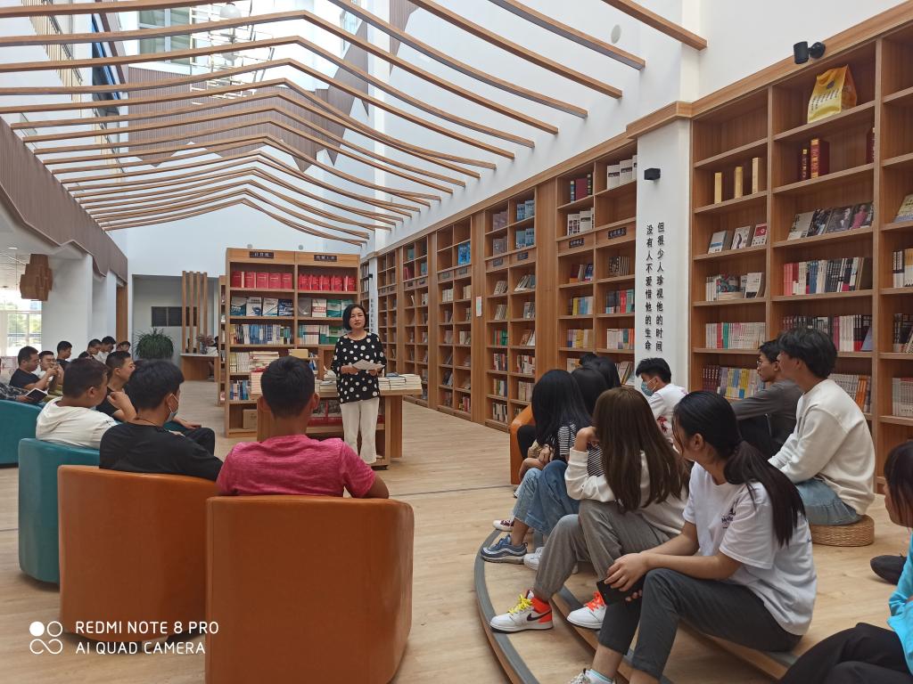 走进韵泽书屋,文学、教育、医药、社科、计算机等书籍琳琅满目,温馨优雅的环境里同学们分散而坐,大家各抒己见,畅谈自己的读书经历和感悟,分享书中的哲理与思想,推荐着对自己有积极影响的书籍。分享的书籍涉及经典国学、中外名著、心理励志等各个方面,大家在彼此的分享中产生了深深的情感共鸣,充分享受着读书的快乐与愉悦。最后老师与同学们分享了三种读书的方法,一是课堂阅读要“读一读、品一品”,二是拓展阅读展开专题性研究,三是整本书阅读全面提升语文核心素养。老师还为同学们提供了好书榜上的推荐书目。