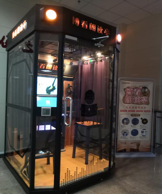 博看朗读亭位于图书馆一楼大厅,是一款以朗读体验方式为主,集配乐、朗读、录制、线上分享等功能为一体的互联网设备,读者只需通过手机扫码关注即可免费使用。在朗读亭里,读者可以选择系统提供的作品,内容涉及诗歌、散文、少儿读物、名著节选等海量中外经典作品;也可以自带作品进行原创朗读。在私密专属的个性化空间里,给读者带来全新的阅读体验。