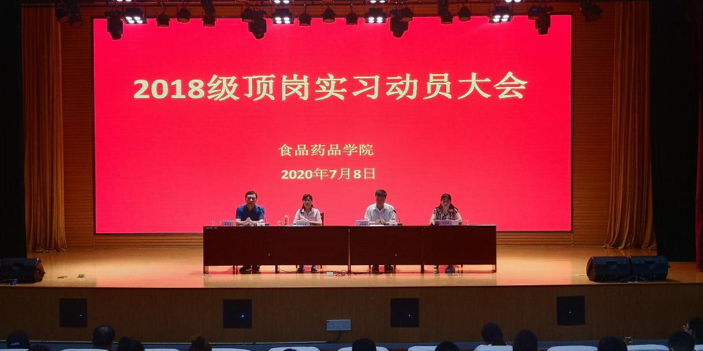 为进一步做好2018级学生的顶岗实习工作,7月8日下午,食品药品学院在滨海校区图书馆报告厅召开2018级顶岗实习动员会。食品药品学院领导班子、各科室负责人、辅导员、2018级班主任以及全体2018级学生参加,会议由食品药品学院党总支书记主持。