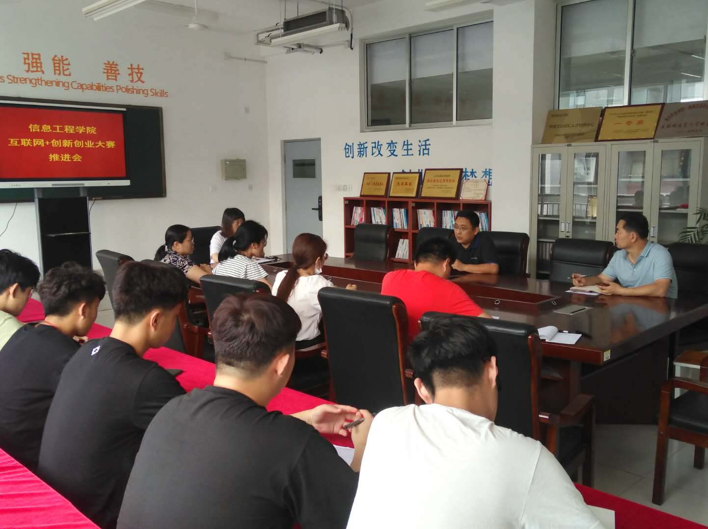 为进一步做好“互联网+”创新创业大赛项目的培育工作,6月26日下午,信息工程学院在惠泽2号楼B410会议室举办“互联网+”创新创业大赛项目推进会,信息工程学院主要负责同志、项目指导教师及学生团队负责人30余人参加了会议,会议由信息工程学院团总支负责人主持。