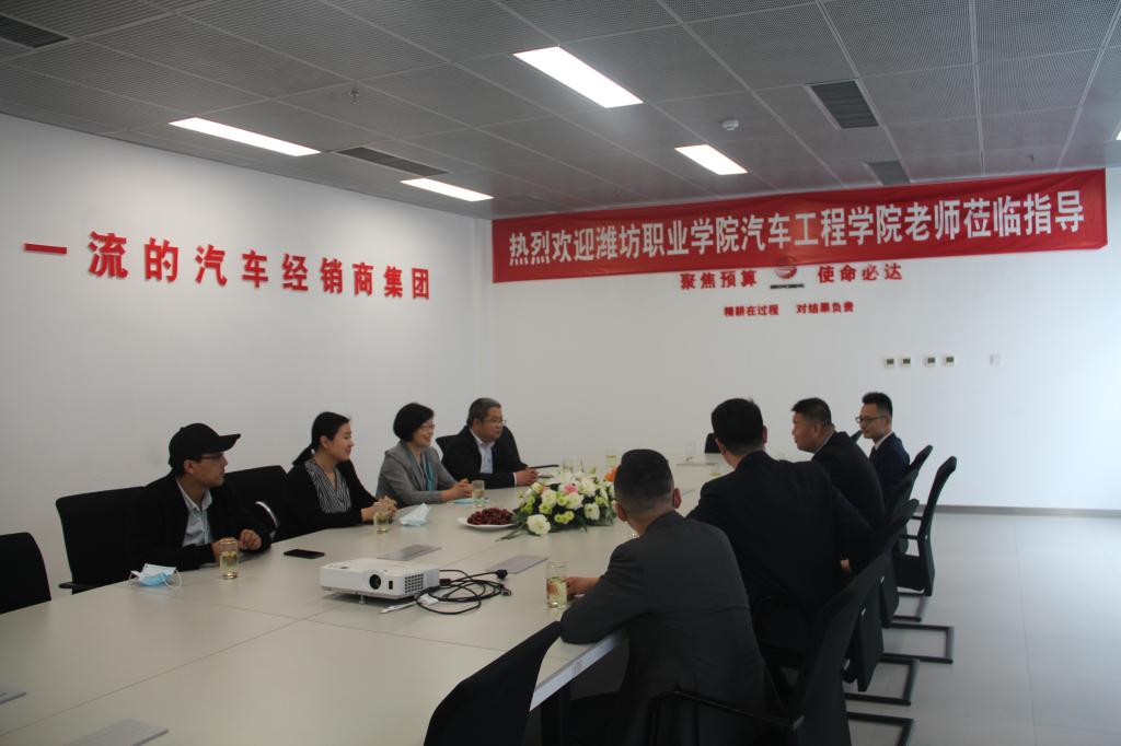 5月15日,汽车工程学院院长杜洪香带领汽车检测与维修教研室、产学合作办公室的老师到山东顺骋集团潍坊分公司开展校企合作洽谈工作。山东顺骋集团副总经理尹逊喜、人力资源专员徐乐、林肯汽车销售公司总经理高金虎、奥迪车销售公司总经理栾永涛、潍坊分公司招聘总监王德嵩、行政总监张明等参加了洽谈会。