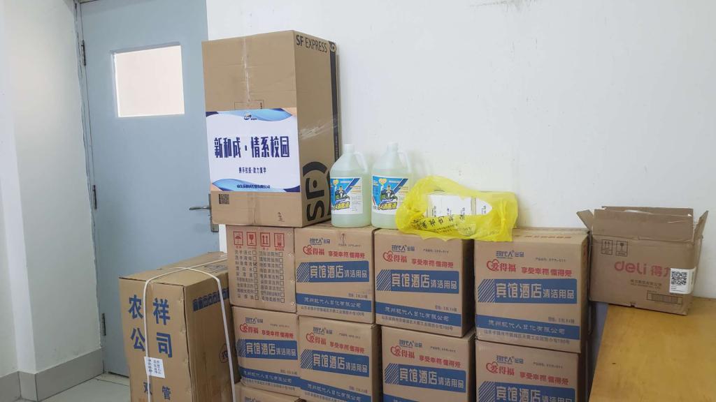 为协助做好学生开学返校防疫工作,5月15日,山东新和成控股有限公司向化学工程学院捐赠电子测温枪5支、一次性医用口罩1000个、消毒液50桶等防疫物资。在学院紧张有序筹备开学的情况下,新和成控股向学院捐赠防疫物资,是对学院疫情防控工作的有力支持,体现了企业的社会责任感,更体现了校企合作如一家的情谊。