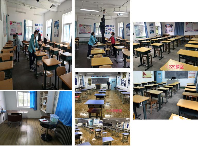齐心协力通过核验、复核。为贯彻落实山东省春季学期开学条件核验细则要求,顺利通过开学核验,早日迎接学子返校复课,5月11日、13日,国际商务院组织全院教师开展了教室及留观点布置、环境消杀、卫生清扫活动,做到了制度上墙、材料进文件夹、楼内地面一尘不染、教室用品干净整洁、窗明几净、消毒清洁用品摆放整齐。并按照核验细则规定,每日上、下午对教室及办公区域的各个角落进行全方位消毒杀菌,按时通风,作业人做好了消杀、通风记录。该院在核验准备工作中做到了每一个环节的认真细致,为该院学生返校提供了安全可靠的环境保障。在全体教师的齐心努力下,该院顺利通过市开学条件核验工作组的现场核验和省教育厅复核督导组的现场复核。