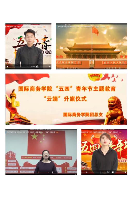火红五月,青春节日。为了纪念五四运动101周年,结合当前疫情形势,国际商务学院举办了“云端”升旗仪式、书法比赛等线上线下主题教育,旨在提高学生对五四运动历史意义和时代价值的认识,引导广大学生传承五四精神,激发学生的社会责任担当意识,自觉把个人的成长进步和祖国发展紧密联系在一起。