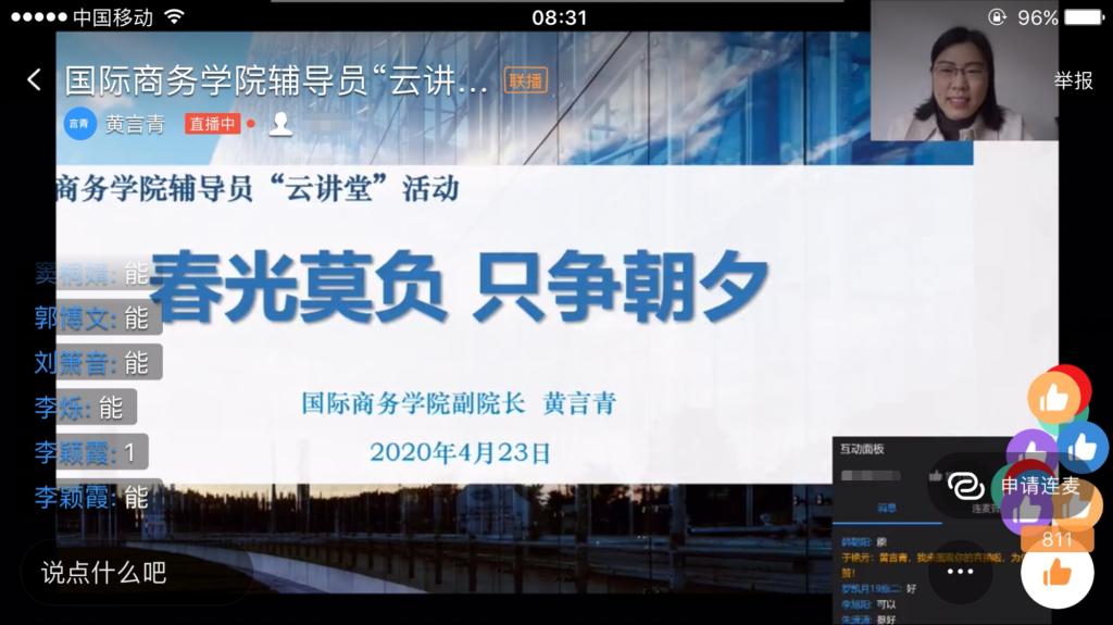 国际商务学院开展“春光莫负,只争朝夕”辅导员“云讲堂”活动
