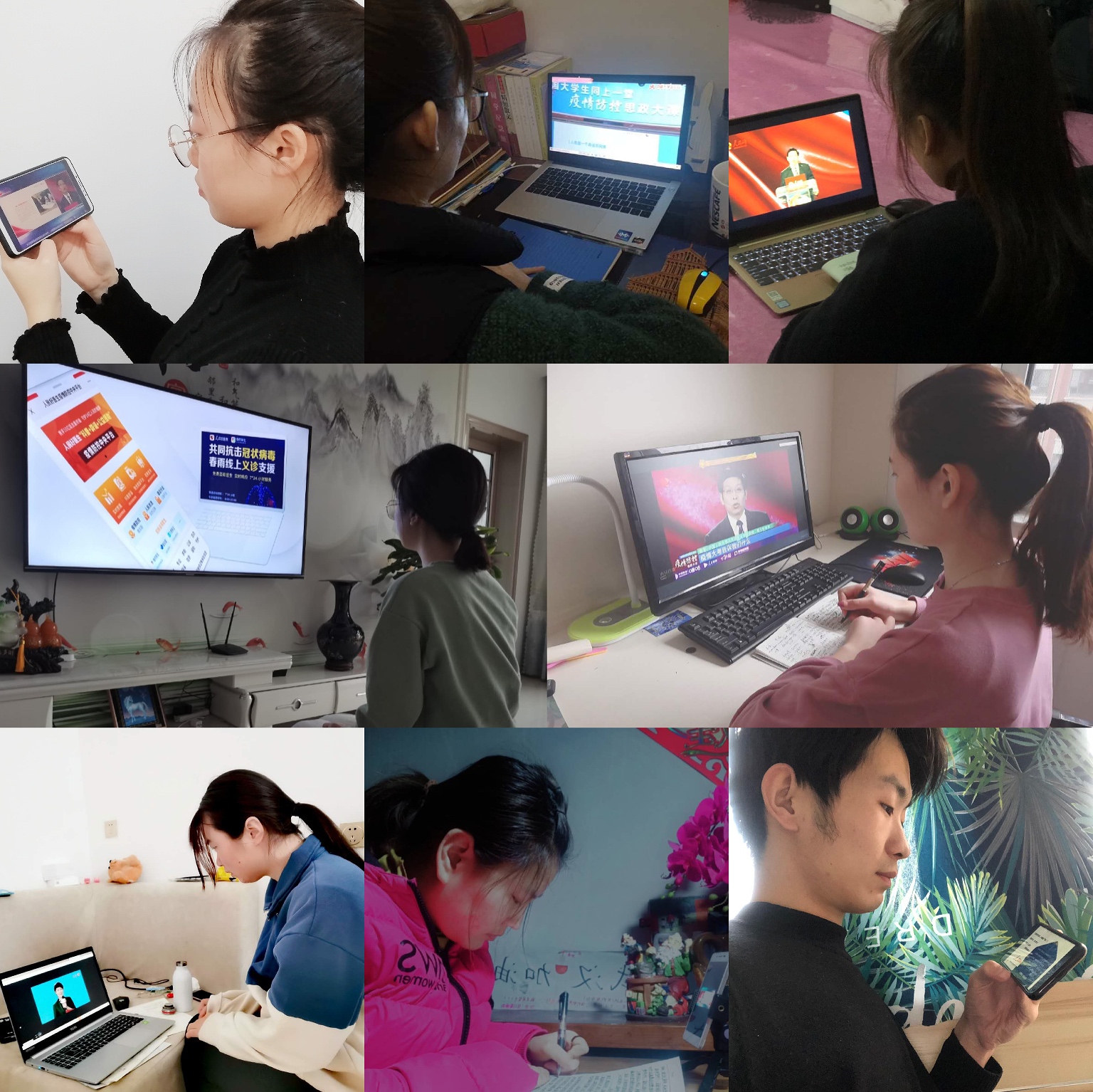 为引导大学生传承和弘扬爱国主义精神,深刻认识中国抗疫彰显的中国共产党领导和中国特色社会主义制度的显著优势,增强“四个意识”,坚定“四个自信”,做到“两个维护”,3月9日下午,国际商务学院按照学院部署,积极安排组织全体师生统一观看“全国大学生同上一堂疫情防控思政大课”网络直播,并要求学生在课程直播结束后书写自己对思政大课的感悟。