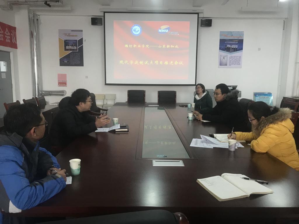 为深入推进现代学徒制试点项目建设,12月24日,化学工程学院分管领导、产学研办公室主任、化工创研室主任及部分骨干教师与山东新和成控股有限公司负责人在木泽楼B207会议室就2018级、2019级现代学徒制班合作培养相关工作进行了深度的洽谈交流。