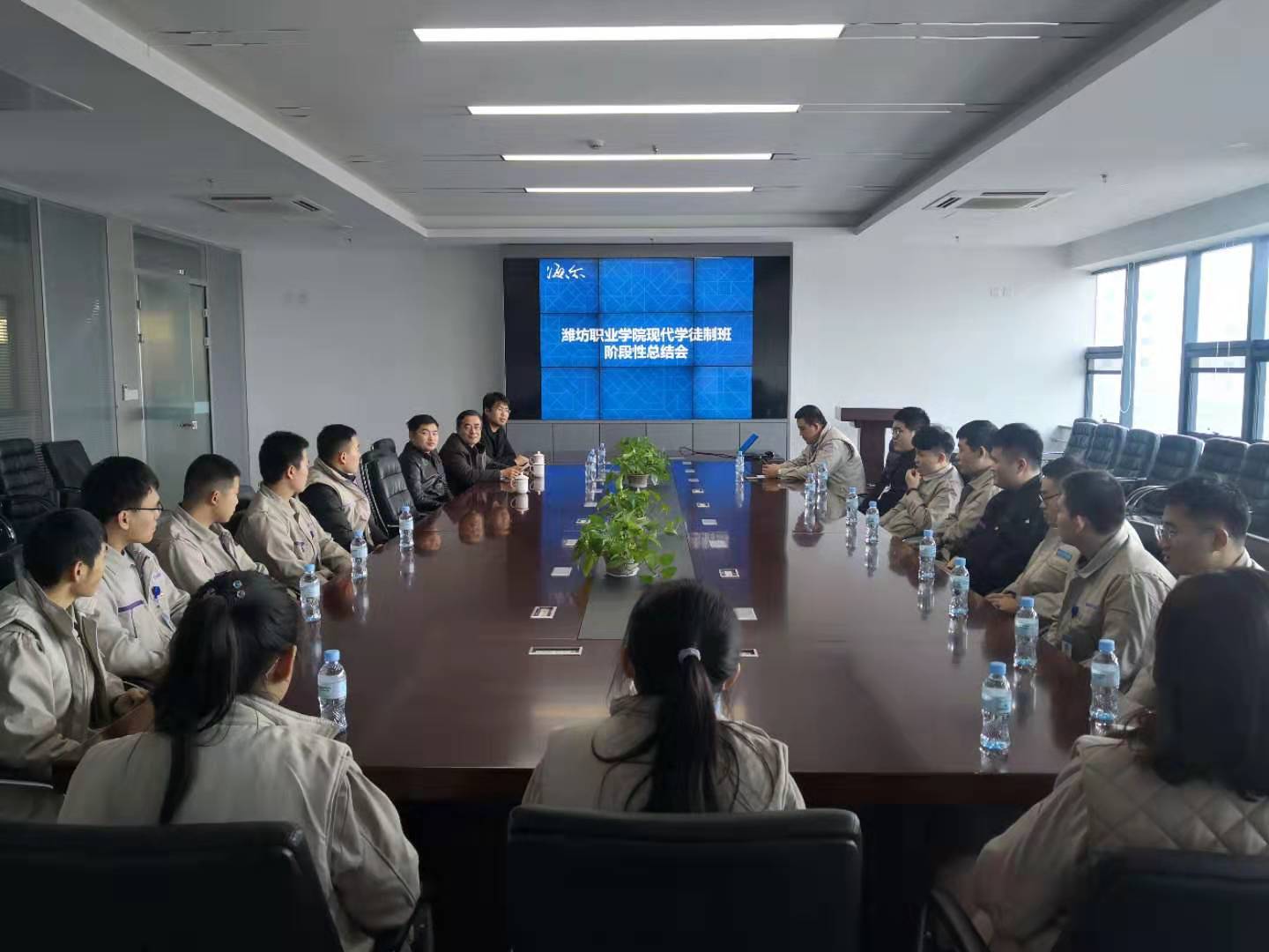 为进一步深化校企合作,推进学院国家级现代学徒制试点相关工作,12月18-19日,机电工程学院主要负责同志及相关专业教师赴必赢国家级现代学徒制试点专业合作企业海尔集团进行调研,并就必赢两个国家级现代学徒制试点专业电气自动化技术、数控技术专业即将开展的下一阶段工作,进行了进一步的磋商与交流,并与企业就目前现代学徒制的实施进行了阶段性总结。