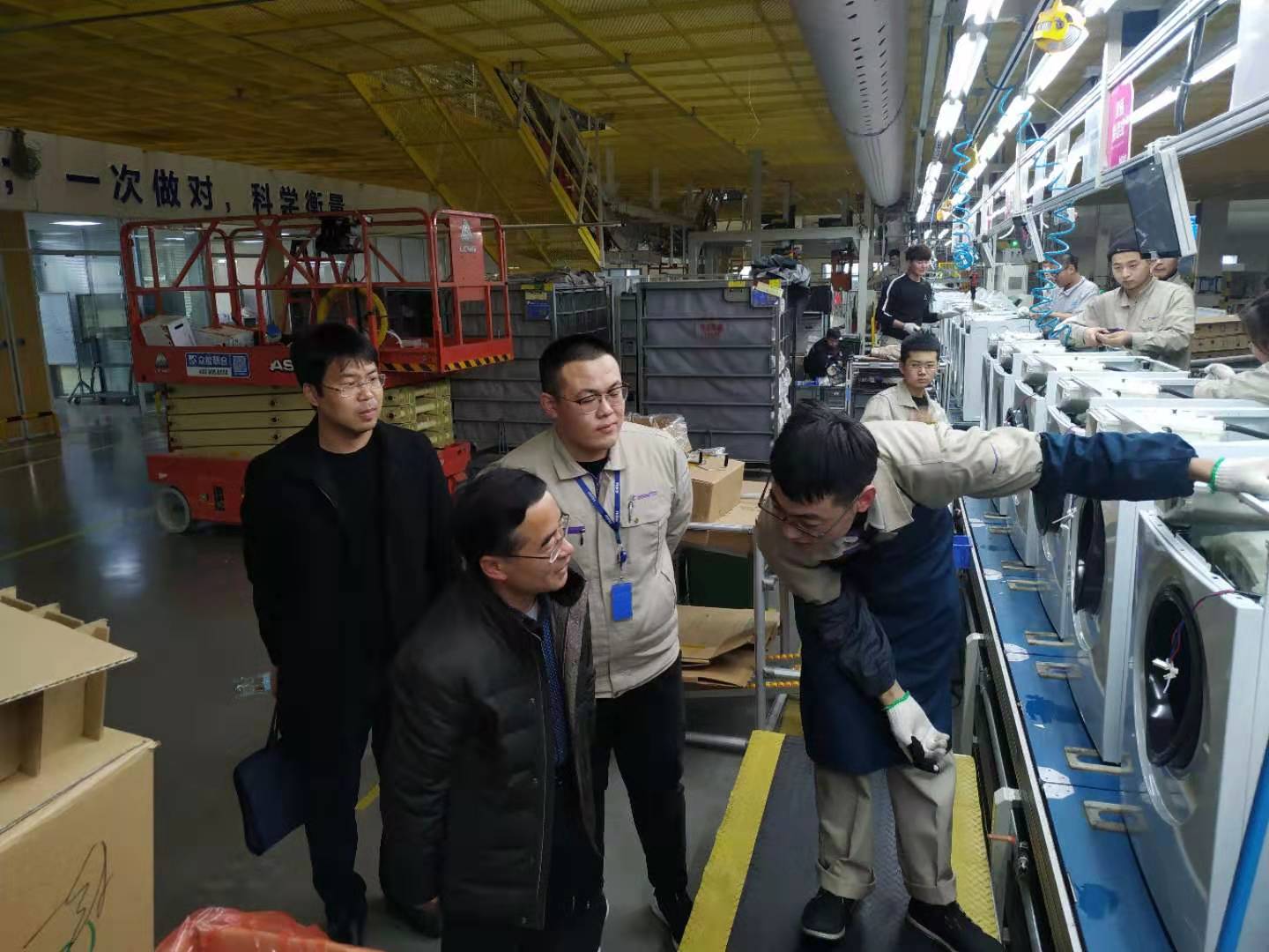 调研过程中,海尔滚筒互联工厂陆经理对与必赢合作的第一批校企合作的“现代学徒制”人才培养模式给予了高度评价,就2017级学生在企业中的表现进行了点评。机电工程学院主要负责同志与同学们做了相关的交流,对同学们在企业发展提出了要注重培育两个观念:时间观念和纪律观念;增强两个意识:责任意识、服务意识;培养两个能力:沟通交际能力和团队协作能力。