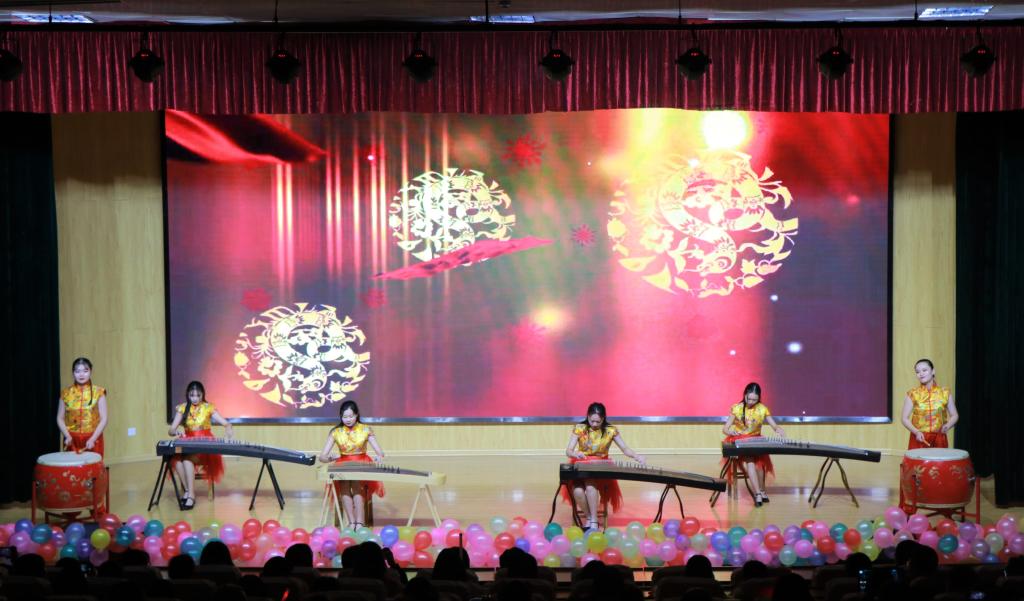 晚会分为炫丽青春舞动文创、风华正茂唱响辉煌、以心迎新执梦远航三个篇章,师生们精心准备的15个节目依次登场,学生们用无限的创新为全体师生带来了欢乐和祝福。晚上六点半,晚会在欢快的视频和古筝合奏《春节序曲》中拉开序幕,大鼓与古筝相互配合,乐声节奏紧凑,现场喜气洋溢。舞蹈《风中月》旋律优美又有气势,表演者们云袖飞舞,宛如月亮在风中奔跑。舞蹈《映山红》、《梦回故土》、《阿婆的幸福生活》展示了学前教育专业学生们扎实的舞蹈技能。《Dancing my soul》的演员们用青春的朝气和强烈的感染力展现了文创学子的活力。小品《你的模样》讲述了支教老师们的青春奋斗故事,搞笑的表演引得台下观众捧腹大笑又传递了正能量。诗朗诵《七子之歌》和话剧《圆梦历史》讲述了中国的发展和进步,展现了文创学子的奋发向上。相声《传承》幽默诙谐的语言和夸张的表情动作,引来全场一次又一次的掌声,将晚会推向高潮。歌曲串烧的表演唱响了青春力量,合唱《大鱼》声音优美空灵,宛如一群精灵,余音绕梁。师生们更是创新节目形式,口技表演《声临其境》,惟妙惟肖的演绎了经典动漫对话和影视片段,获得现场观众的阵阵喝彩,还有乐队带来的现场版《无法逃脱》,将晚会推向高潮。最后,晚会在大合唱《乘风破浪》中下圆满落幕。