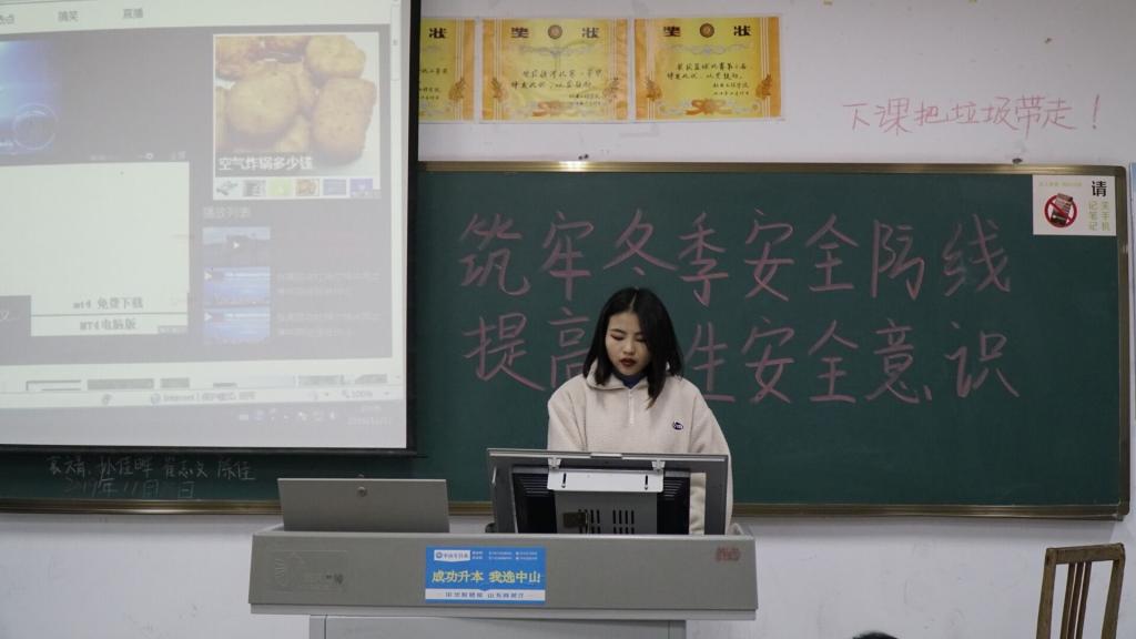 12月17日晚,信息工程学院各班级为单位集中开展冬季安全主题班会。班会上,各班级负责人利用相关视频、PPT等形式认真讲述了我们身边存在的各种安全隐患及应对方式,使同学们进一步了解到了应该如何正确避免事故的发生,以及如何正确应对突发事件,帮助同学们能更好地进行安全防范,同学们也都积极发言,互相交流学生安全防范知识,提高自我保护的能力。班会后,同学们纷纷表示,要强化安全意识,应时刻关爱自己和他人的生命,任何时候都要牢记安全第一,大家携手共同营造平安校园。