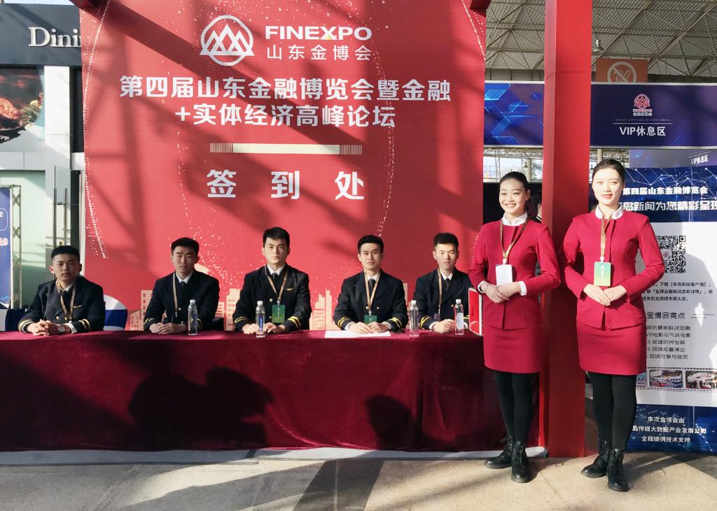 11月29日至30日,第四届山东金融博览会和金融+实体经济高峰论坛分别在潍坊富华大酒店、富华会展中心举行,现代服务业学院空中乘务专业50余名志愿者在活动现场提供了志愿服务。