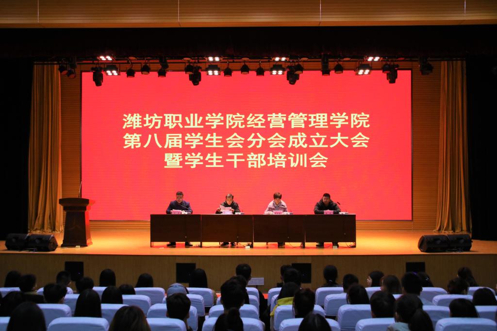 11月21日下午,经营管理学院在图书馆报告厅召开学生干部培训会暨经营管理学院学生会分会成立大会。经营管理学院党政负责人、相关工作人员及全体学生会干部参会。会议由经营管理学院主要负责人主持。分管学生负责人宣读经营管理学院学生会分会人员名单。