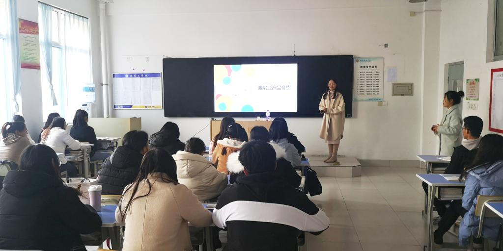 课上,她从波尼亚的企业文化、产品介绍和新品推荐等几个方面,结合个人入职后的工作经历和公司的发展历程,为同学们详细讲解了波尼亚公司的愿景使命、核心价值观及社会责任,展示了顽强拼搏、自强不息的企业精神。在产品介绍和新品推荐环节中,进行了积极的互动,课堂气氛十分活跃