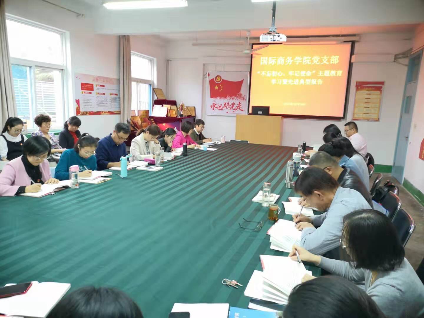 国际商务学院党支部组织开展“不忘初心、牢记使命”主题教育学习暨先进典型报告