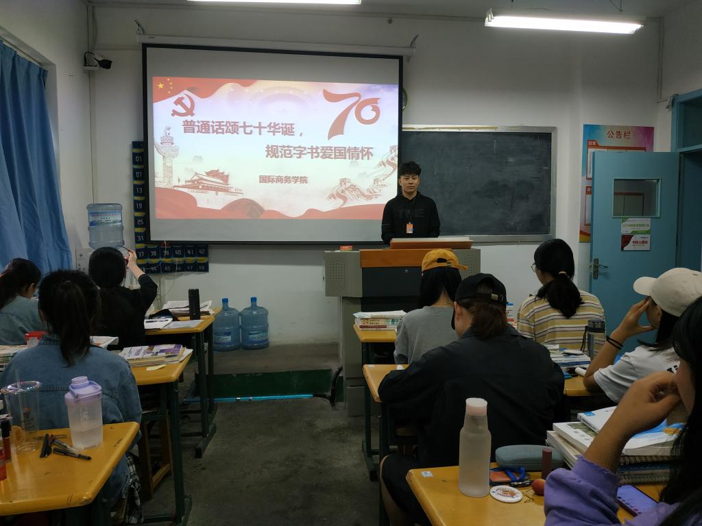 为构建和谐校园,营造良好的语言环境,进一步增强学生规范使用语言文字的意识,提高大学生的普通话水平,国际商务学院开展普通话推广宣传周系列活动。
