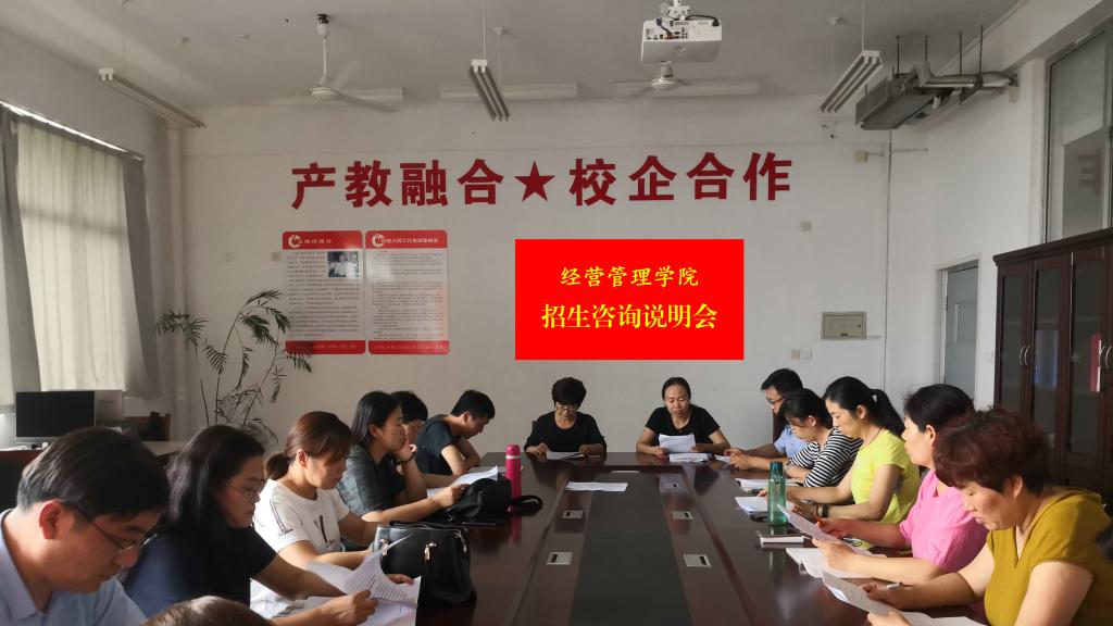 为更好地做好招生咨询工作,吸引更多的优质生源报考我校,7月9日,经营管理学院召开招生咨询说明会,该院主要负责同志、分管招生就业同志和部分骨干专业教师参加。