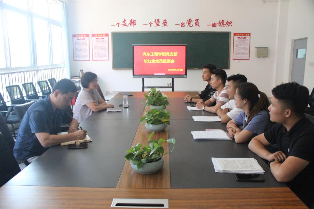 7月1日下午,汽车工程学院在惠泽2号楼208室召开2019届毕业生党员座谈会。汽车工程学院主要负责同志、团总支负责同志以及2019届毕业生党员参加此次座谈会。