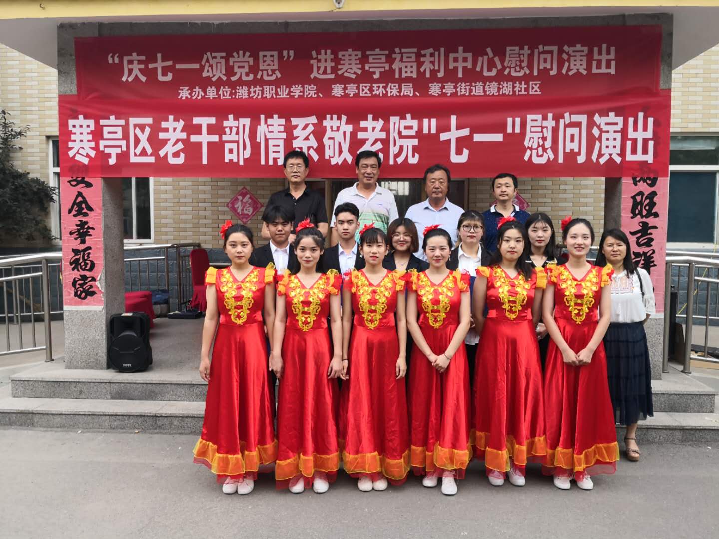 为了迎接中国共产党建党98周年,讴歌党的光辉历程,6月28日,化学工程学院、通识教育中心、资产处、监察审计处、科技处五个党支部联合镜湖社区、寒亭区环保局到寒亭区福利中心开展了“庆七一颂党恩”慰问演出和送温暖活动。
