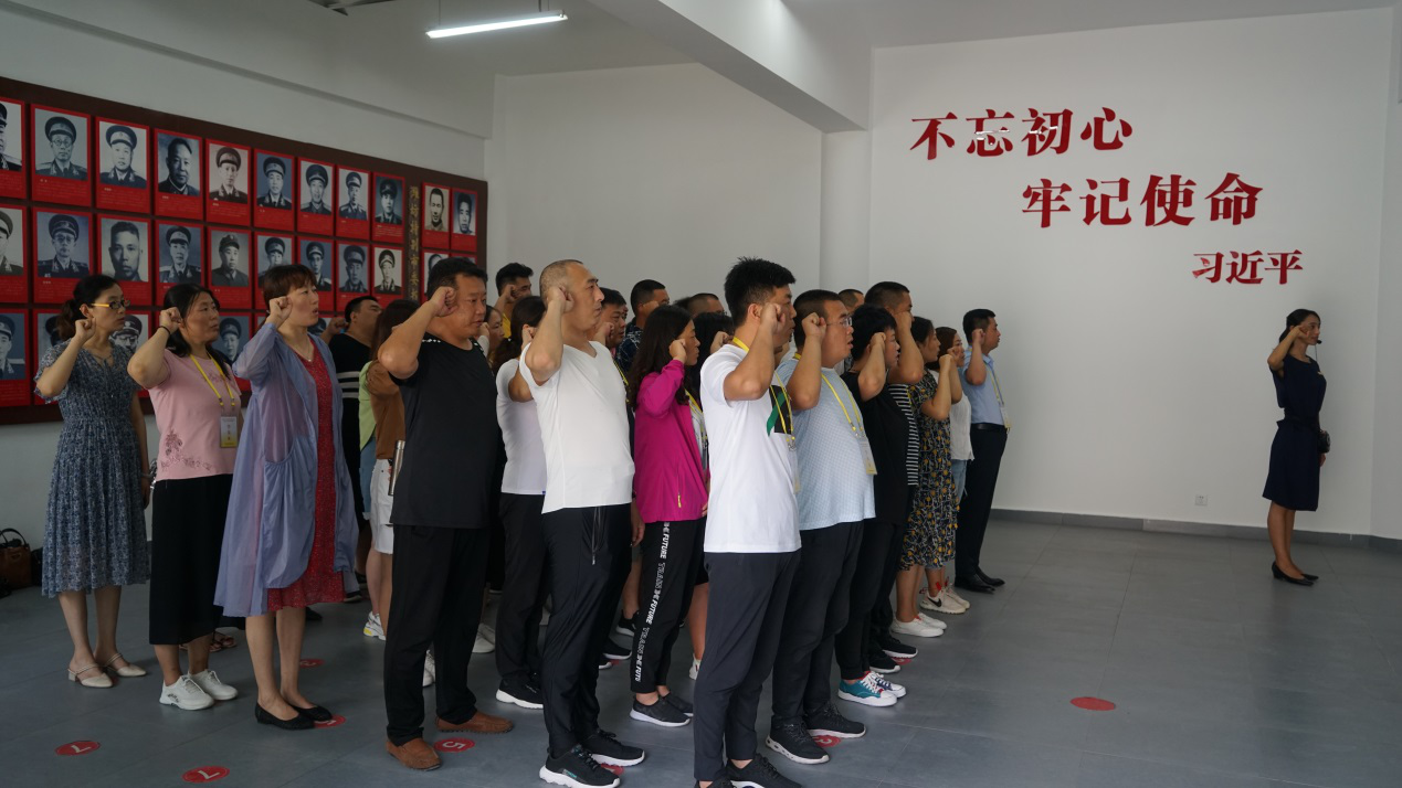 基地讲解员向学员介绍了老一辈革命家解放潍县城的光辉历史,革命先烈们攻坚克难,在潍县战役中不怕牺牲,英勇战斗的精神让大家肃然起敬。最后,大家瞻仰了潍县战役胜利纪念碑,在鲜红的党旗下,全体党员握起拳头举过肩膀重温入党誓词,进行了庄严肃穆的宣誓。