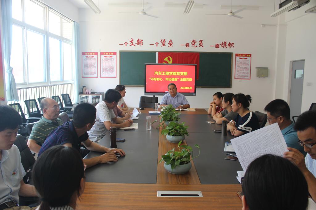 6月27日下午,汽车工程学院党支部举行重温入党誓词活动,汽车工程学院院长杜洪香带领全体党员,面向党旗庄严宣誓,对党忠诚,为共产主义奋斗终生。并举行“不忘初心、牢记使命”为主题党课,传达了习近平总书记在 “不忘初心、牢记使命”主题教育工作会议上的讲话精神,主讲人从为什么要开展主题教育;怎样把握12字“总要求”;把握5个“重点”,明确定出目标任务;阐明方法步骤,真抓实干转变作风等几个方面进行详细讲解,引导党员教师立足本职工作,践行党的宗旨,在学院“双创”工作中干事创业、担当作为、勇于奉献,积极发挥先锋模范作用。