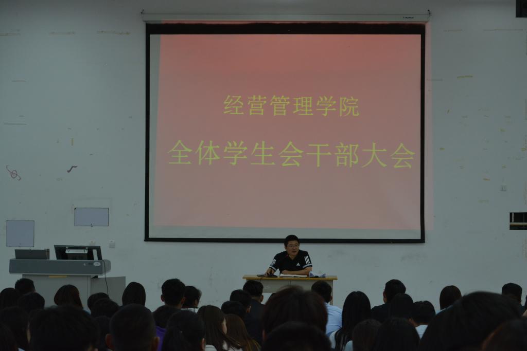 本次大会由经营管理学院辅导员(团总支)办公室负责人主持。会上首先总结了学生会近一年内的工作情况,肯定了大家对学院做出的贡献和付出的努力,同时对工作中出现的问题和不足之处提出了建议和改进方向,并提出三点要求:一是把握时代主题,勇担时代责任;二是努力学习知识,严格要求自我;三是明确工作主题,服务同学成长成才。最后,全体学生会干部表示秉承全心全意为同学服务的宗旨,做学生友,不做学生官,走在时代前沿,努力将经营管理学院学生会建设成能够引领学生思潮的一流学生组织。