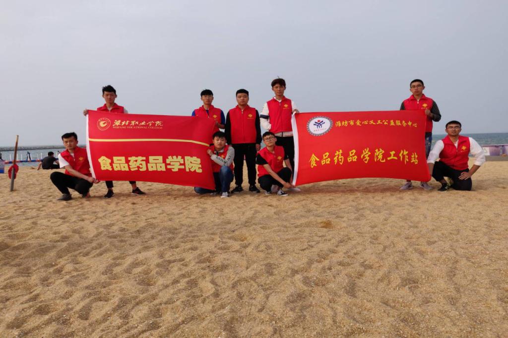 为弘扬志愿服务,加强清洁环境建设,食品药品学院爱心义工团队于5月11日在潍坊市欢乐海沙滩举行“清洁沙滩”主题志愿服务,共10名志愿者参与此次活动。
