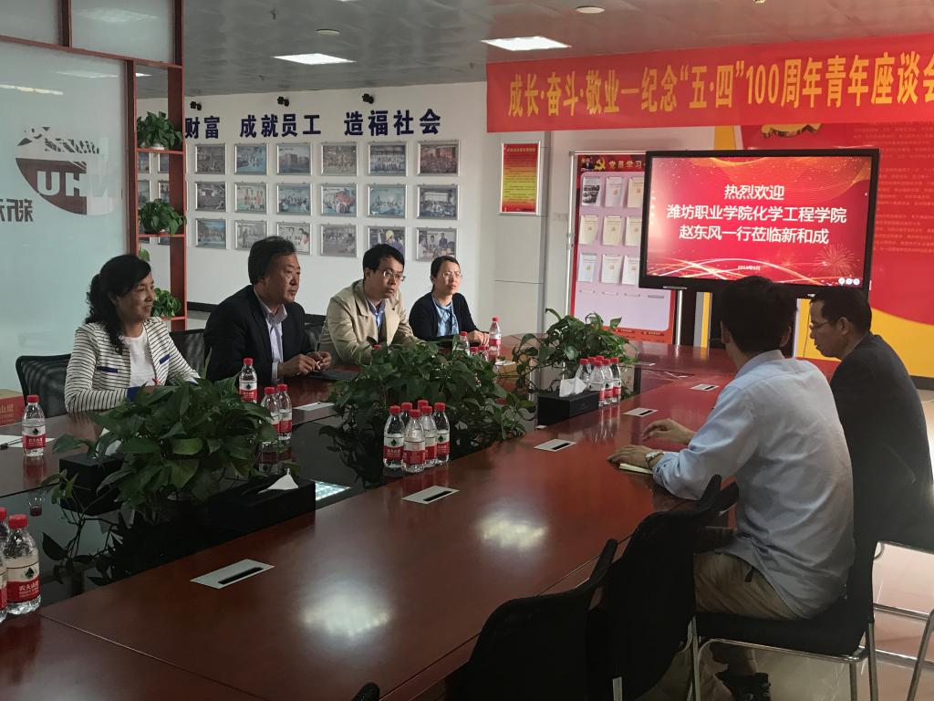为进一步促进校企合作深度融合,提升共同育人培养质量,5月9日下午化学工程学院负责同志以及多名骨干教师进入现代学徒制试点合作企业——山东新和成股份有限公司,与企业负责人进行“3+2”跟岗轮岗实习相关事宜对接,并探望了正在实习的2017级现代学徒制新和成班的部分学徒。