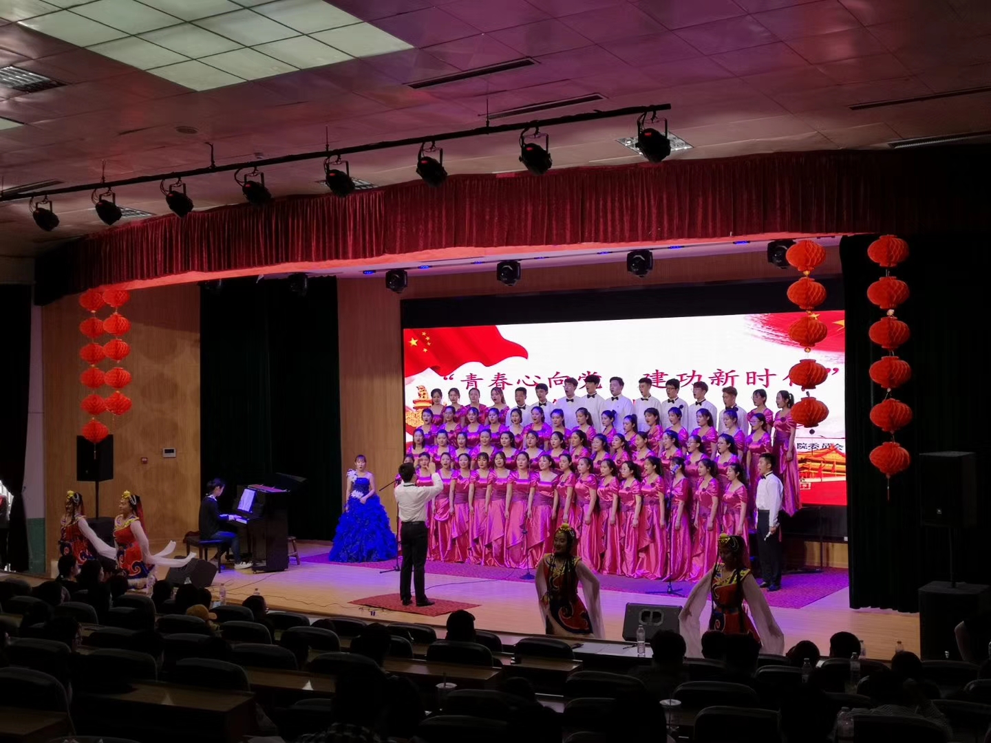 为弘扬习近平新时代中国特色社会主义思想,激发全体师生的爱国主义热情和民族自豪感。国际商务学院于5月9日下午在奎文校区16号楼报告厅举办“青春心向党,建功新时代”合唱比赛。国际商务学院、文化创意学院、现代服务业学院等多个代表队参与了此次活动。