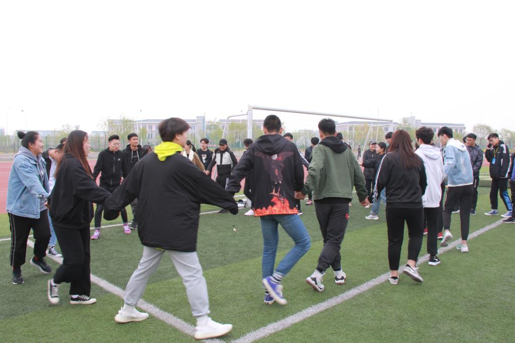 本次踏青运动会结合季节特点和当前学生状态设置了踢毽子、“五毛一块”、过杆舞等趣味性和协作性于一体的比赛项目。活动前,同学们按照抽签方式组队并进行活动热身。踢毽子时,选手们心细脚稳、发挥稳定;在“五毛一块”环节,同学们根据裁判口令,迅速的自由随机组合,默契的配合赢得观众阵阵喝彩;最让人期待的当属过杆舞,同学们手牵手过杆时,一方面为顺利过杆,努力协调动作,惹得观众捧腹大笑,另一方面体现了良好的团队合作意识,成为本次踏青运动会的一大亮点。活动现场散发着青春的气息,踏青运动会紧锣密鼓地有序进行,气氛热烈,趣味横生,加油声、呐喊声、欢笑声不绝于耳,同学们本着“友谊第一,比赛第二”的赛场精神,互相加油鼓劲儿,场面激烈而温馨,玩出了精彩,赛出了新意,表现出了极高的参与热情。