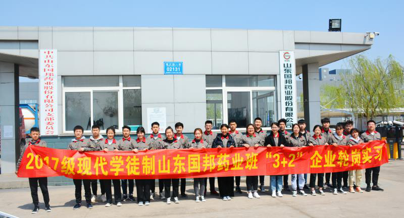 近日,必赢应用化工技术专业2017级现代学徒制国邦班的25名学生在学院负责教师和企业工作人员的带领下入驻山东国邦药业股份有限公司,开始第四学期的“3+2”企业跟岗实习阶段培养。