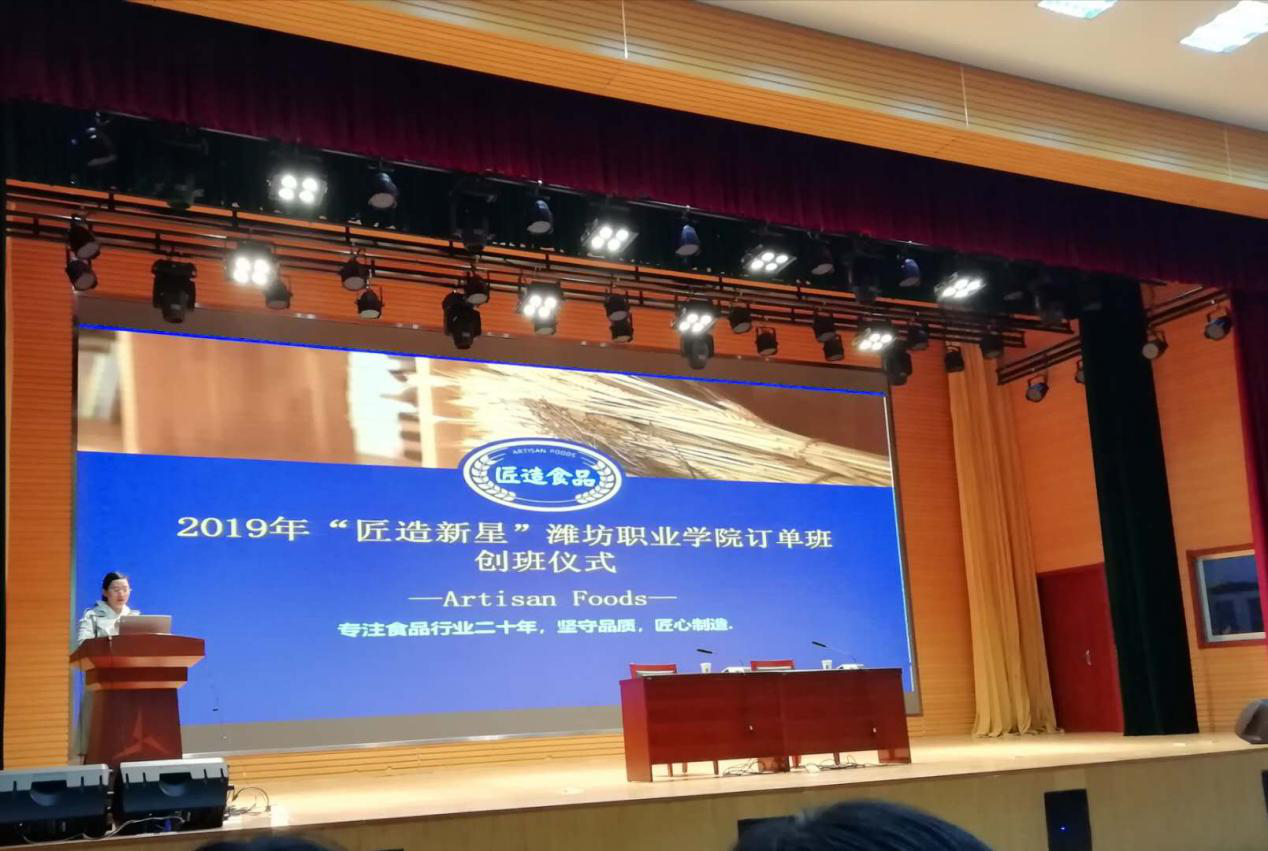 姚威介绍了潍坊匠造食品有限公司的企业文化,分享了稻盛和夫的成功之道,并以自己在母公司潍坊匠造食品有限公司的成长经历告诉同学们,对待工作要认真负责,做一个“自燃型”的员工,主动担当才能更快地成长。随后,潍坊匠造食品有限公司招聘经理李婷婷对“匠造新星”76net必赢官网订单班做了详细的介绍,包括组班模式、培训计划、成长路线等方面的具体内容。