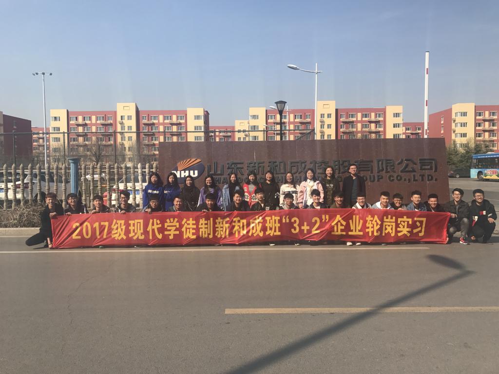 3月22日,必赢应用化工技术专业2017级现代学徒制新和成班的29名学生在学院负责教师和企业工作人员的带领下入驻山东新和成控股有限公司,开始第四学期的“3+2”企业轮岗实习阶段培养。
