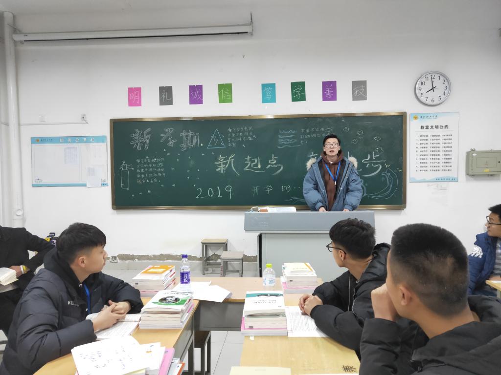 昂首迈步新学期、振奋精神新气象。为积极迎接新学期的到来,确保学生尽快收心,从“假期模式”切换到“学习模式”,调动学生的积极性以及增强集体凝聚力,3月3日晚汽车工程学院组织各班级进行了“新学期、新气象”主题教育。